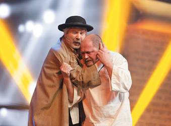 «А что, Рената Литвинова разве еврейка?» — шепчутся соседи. Еврейка или нет, но вместе с Максимом Леонидовым она ведет этот вечер. Как всегда, с алыми губами в стиле ретро, прической, как у Марлен Дитрих, фирменными — и, по слухам, тщательно репетируемыми — хрипотцой и придыханием и в очень длинном платье со шлейфом, в котором актриса слегка путается, как и в трудных еврейских фамилиях и именах. В отличие от Марианны Максимовской и Леонида Парфенова, которые вели предыдущую церемонию, их преемники не слишком уверенно чувствуют себя на кремлевской сцене. К счастью, внимание от них отвлекает анимация на заднике, на тему Марка Шагала, и музыка.