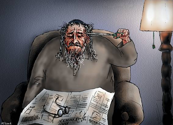 «Религиозная детская литература: без женщин и собак» (опытный журналист понимает, что читатель тут же вспомнит плакаты, запрещавшие вход евреям и собакам). Иерусалимское приложение к «Маариву», заметка об иерусалимской синагоге «Зихрон-Моше» и ее колоритных посетителях озаглавлена мило и непритязательно: «Знакомьтесь — синагога для психов из ультраортодоксальной общины». В том же номере: «Так ультраортодоксы планируют захватить Катамоны» (сообщение о том, что религиозные жители города, ужас-ужас, централизованно скупают жилье в этом районе).