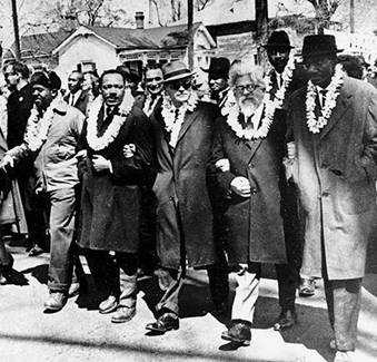 Мартин Лютер Кинг (второй слева) и раввин Абрахам Гешель (второй справа).