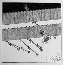 Заборы появляются во многих работах цикла: темы границы и пограничного, запрета и свободы важны автору. У Аккермана есть даже книга «Забор Кафки».