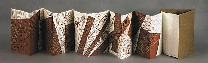 Книги у Аккермана разной длины. Они сделаны из одного листа, порой длиной до шести метров. Некоторые книги настолько маленькие, что их можно положить в карман. Всего книг около ста, посвящены они разному: здесь и «Москва Вальтера Беньямина», и «Ветер Ниневии», и «Паланга» с домиком Томаса Манна в Ниде на Куршской косе, где он писал «Иосифа и его братьев», и «Беременный Заратустра». Ницше оказывается беременным этим миром, своей экзальтацией.