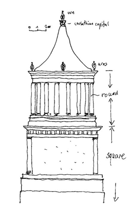Первоначальный набросок плана реконструкции мавзолея Ирода, сделанный Эхудом Нецером