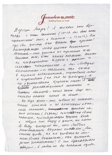 Дорогой Марк! Я только что вернулся с этого саммита[4] (10–17 был весь наш израильский заезд, а саммит — с 12 по 16). Вот где был бы простор для Вашей иронии! Неоконсерваторы очень просто достигли единства — они просто не пустили на саммит тех, кто инако мыслит. Только на неофициальной встрече с моими и Зиниными читателями я мог свободно высказаться — и оказалось, что есть в Израиле меньшинство, слушавшее меня с сочувствием (но оно не правящее). А на официальном круглом столе я ограничился одной репликой против течения и сломал единство — после этого еще несколько наших пошло за мной…