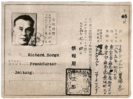 Журналистское удостоверение Рихарда Зорге в Японии, куда он был командирован Центром в 1933 году