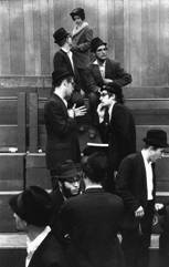 Захватывающе интересной получилась статья Евгении Гершкович об американском фотографе Леонарде Фриде. Много чего можно из нее почерпнуть; вот, к примеру, автор пишет: «Фрид был в душе поэтом, это ясно. Но хотел стать живописцем, хотя не стал. Однако ему, владевшему иным инструментом, удавалось так неожиданно выстроить композицию и рассчитать точный ракурс, что момент, казалось бы, случайно выхваченный из вечности, превращался в некое подобие полотна, над которым иной живописец работал бы годами. Взгляд и жест мальчика в кипе, прислонившегося к фасаду иерусалимского дома; заразительный смех чернокожих детей из Гарлема под брызгами уличного гидранта; точно вписавшиеся один в другой профили голландских молодоженов; люди, бредущие вдоль стен; очень живые, чуть растушеванные, силуэты священников в Ватикане, кидающихся снежками… Фрид снимал просто, делая упор на взаимоотношения объектов в кадре, психологию персонажей. Пусть все это наиболее удачные из сделанных дублей, только каждый — полноценный сюжет ненаписанного полотна». И с этим нельзя не согласиться, особенно глядя на фотографию середины 1970-х годов, где молодые ешивебохеры стоят парами, то продолжая, то прекращая непрекращающийся еврейский диспут. Но похоже, эта самая «живописная» фотография Фрида имеет как раз чисто живописный претекст или подтекст. Это картина американо-еврейского художника Макса Вебера 1934 года, о которой мне довелось писать несколько лет назад на страницах «Лехаима» (Л. Кацис. Метаморфозы субботы // Лехаим. 2009. № 11). У меня нет точного ответа на вопрос, постановочная или репортажная фотография вышла у Фрида, но тот факт, что картина Вебера не могла пройти мимо него, сомнений не вызывает. И здесь остается только сравнить плоскую, уходящую к указующей руке раввина композицию картины с замечательным контрапунктом ей на фотографии, где место указующего перста занимает мальчик, дающий всей композиции новое завершение и новый смысл. Поэтому я, коли такая возможность будет, предложил бы читателям взглянуть на цветную картину и фотографию одновременно, и тогда истинная живописность кадровки и ракурсов Леонарда Фрида проступит со всей ясностью.
