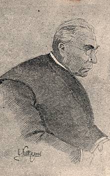 Ксендз Пранайтис, эксперт. Из альбома «“Дело Бейлиса” в рисунках и фотографиях художника В. Кадулина». Киев, 1913 год