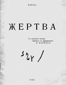Титульный лист брошюры Михаила Скарятина (псевдоним Энель) «Жертва», изданной в 1925 году в городе Нови-Сад, Сербия