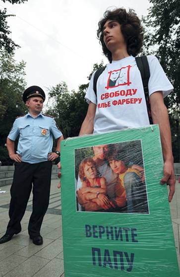 Петр Фарбер на пикете в защиту своего отца. 6 августа 2013 года