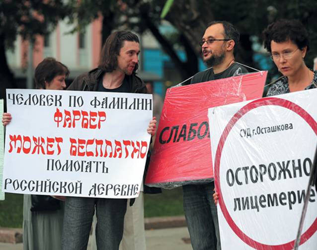Дело Фарбера получило такой резонанс, потому что речь идет о замученном романтике. Илья Фарбер, артист с двумя образованиями, бросил Москву, решил пойти в народ и стал работать учителем рисования в деревне Мошенка. Это нечеловеческая глубинка, туда нет никаких дорог. А Фарбер решил там устроить культурный центр, за что его фактически и посадили — не лезь, — причем под улюлюканье тамошней толпы. На суде тетки из деревни давали показания про то, какой отвратительный у Фарбера характер. То есть они его сажают за то, что у него плохой характер! Он, конечно, наивный человек, бессребреник, «городской сумасшедший». Совершенно шукшинский персонаж, не из нашего времени — молодой красивый учитель, которого очень любили дети, потому что он занимался с ними сбором мусора в лесах и т. п. Я до сих пор не знаю, виноват Фарбер или нет. За что людям дают взятки? За то, что они что-то делают, например, подписывают акт о приемке работ. Но ведь Фарбер его так и не подписал, когда его задержали с мечеными купюрами, акта не было ни при нем, ни при Горохове. То есть получается, что ему дали денег просто так. А в таком случае я больше верю в версию Фарбера, который говорит, что он ремонтировал клуб на свои деньги и Горохов обещал ему их отдать, когда получит перевод из бюджета. Точно так же можно арестовать вас или меня при получении гонорара и обвинить, что это взятка за заказную статью — простите, а где факт заказа? В деле, кроме показаний Горохова, есть еще знаменитая аудиозапись. На первом процессе прокурор Павел Верещагин, позже ставший судьей, сказал, что видеозапись передачи взятки потеряна, но он может рассказать, что на ней было. Но это не прошло. А на аудио-пленке, которую мы все слышали, шаги и какие-то шумы — шорох то ли листвы, то ли бумаги, науке это неизвестно. И прокурор сказал: «Вы знаете, что это такое? Это шелест денег. Я насчитал 30 хрустов по пять тысяч рублей, итого 150 тыс.». И это «доказательство» учтено в деле. Еще несколько аудиофайлов с переговорами Горохова и Фарбера висят в Сети. Конечно, там разговор все время идет о деньгах и о ремонте — о чем же им еще говорить? Но, на мой взгляд, эти записи доказывают вымогательство взятки Гороховым. Я совершенно согласна с тем, что здесь имеет место быть преступление. Я только не понимаю, почему это преступление Фарбера, а не Горохова. Вообще, там история вот какая. Деревня Мошенка стоит на первой линии Селигера, и там существовал налаженный бизнес по торговле земельными участками. Потом главой местной администрации стала женщина по фамилии Валеева, и торговля прекратилась. И как раз в этот момент в деревню приехал Фарбер со своими детьми. Долгое время они жили в спортзале школы, а потом эта самая Валеева — очень красивая одинокая женщина, у нее тоже дети — Фарбера поселила к себе. Такой вот прекрасный жест доброй воли. В конце концов, Фарбер — разведенный отец. И до Валеевой, судя по всему, хотели добраться через Фарбера — посадить его и заставить давать на нее показания. Фарбер этого не сделал, и они сконцентрировались на нем. Но Валеевой после всей этой истории, конечно, пришлось уйти с административной работы, и бизнес по торговле золотой землей вновь процветает. То есть в деле много мотивов: и финансовый, и антисемитский, и просто неприятие «понаехавших».