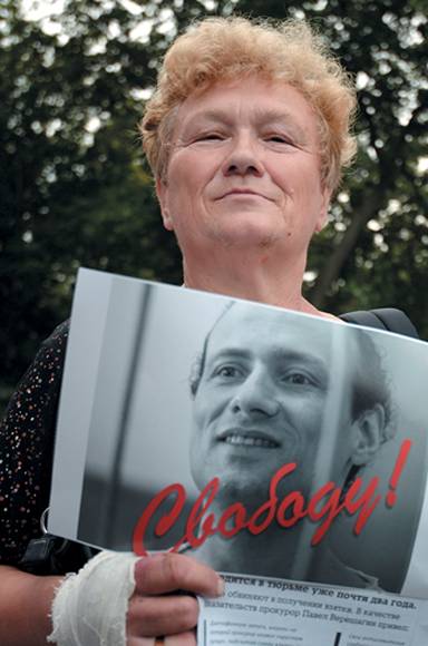 Мать Ильи Фарбера Елена Фарбер на пикете в поддержку сына. 6 августа 2013 года