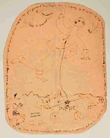 Как следствие, большинство из этих персонажей остаются невидимыми. Но оставляют следы. Кто-то — скомканные фантики, папиросные пачки и грубые реплики, висящие на веревочках на фоне «Белой картины», похожей на стенд. Кто-то — графики дежурств и расписание занятий, составленные, ясное дело, главой семейства, поставившим себя первым номером в списке. От одних остаются вещи, небрежно повешенные на пейзаж с рекой и лесом (фрагмент инсталляции 1983 года «Сошел с ума, разделся и убежал голым»), от других рассказы соседей и сослуживцев, дыра в потолке (инсталляция «Улетел в космос»), записки с прожектом «устройства забора, концентрирующего энергию для полета» или трактат о том, что «на земле жить нельзя», или рисуночки крыльев рядом с размышлениями, «как изменить самого себя»...