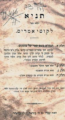 Алтер Ребе (Шнеур-Залман из Ляд). Титульный лист «Таньи» («Ликутей амарим»). 1852 (?) год. Кёнигсберг