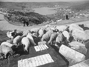 Стадо овец на кладбище, основанном в XVI веке евреями после изгнания из Испании. Стамбул. 1940 год