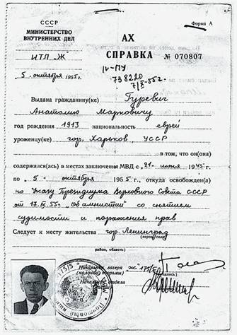 Утром Кента привели в кабинет всемогущего начальника СМЕРШа Абакумова. Там уже находились несколько генералов и человек в штатском — нарком внутренних дел В. Меркулов. Анатолий Маркович рассказывал, что Абакумов, не поздоровавшись, в резкой форме приказал ему сесть и задал первый вопрос: вы ехали в Москву за очередными правительственными наградами? Не получив ответа, он обрушил на Кента поток оскорблений. Некоторые Гуревич запомнил на всю жизнь: когда и кем вы были завербованы? с каким заданием вас заслали в Москву? Допросы следовали один за другим. И, наконец, решение Особого совещания при МГБ СССР: за измену Родине, предательство и другие преступления, предусмотренные статьей 58-1а, Гуревич А. М. приговаривается к 20 годам в исправительно-трудовом лагере. Ни прокуроров, ни адвокатов, ни общения с членами Особого совещания. Только бумага, состряпанная следователем.