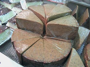 Прилавки с разными видами кугеля на рынке Махане-Йеуда