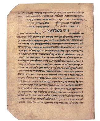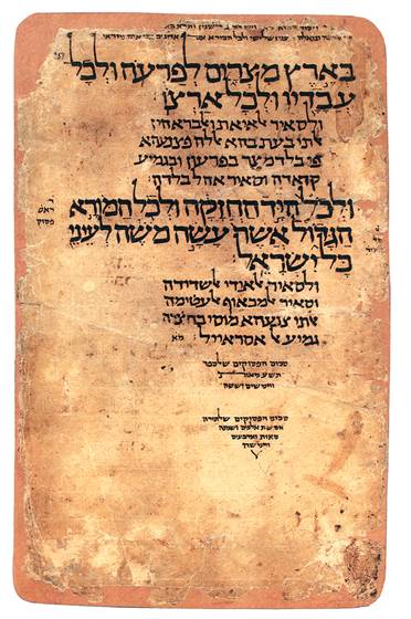 Последний лист, завершение текста Пятикнижия — перевода Саадьи Гаона на арабский язык. Каир (?). Около 1010 года. Российская национальная библиотека