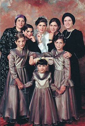 Свадьба дочери. Первая слева Хая, первая справа от невесты Инди, в центре младшая Либи. Иерусалим. 2002 год. Фотография