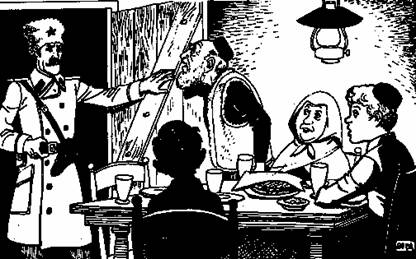 И тут раздался стук в дверь. Все замерли. Реб Берл взглянул на жену, потом на детей. Их лица были искажены ужасом. Стараясь успокоить их веселым словом, он сказал: