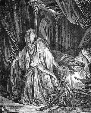 Красавица Юдифь вошла в лагерь Олоферна под видом беглянки из города, пленила его своей красотой, и, когда после пиршества в ее честь он крепко заснул, отрубила ему голову. Среди врагов началась паника, и город был спасен.