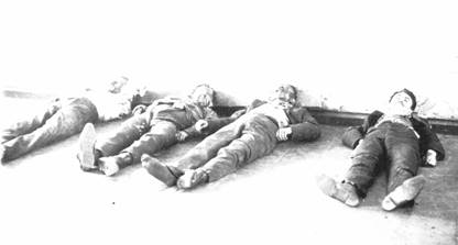 Сидим мы как-то, плетем свои коврики, и вдруг... выстрелы! Стреляли часто и громко. Стреляли где-то близко! Вскоре стали прибегать запыхавшиеся родители и уводить из детского сада своих детей. Пока девочек и мальчиков одевали, а стояла зима, и на ребятах было много всяких одежек, мамы и папы рассказывали, что в город ворвались какие-то петлюровцы, заняли вокзал и по Киевской улице дошли уже до Михайловской... Чей-то папа разъяснял: