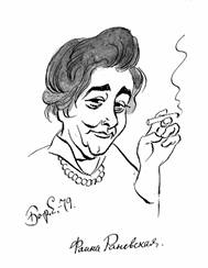Этот забавный и в своем роде "самокритичный" каламбур, вынесенный в заголовок очерка, чрезвычайно характерен для Фаины Раневской. Конечно, трудно согласиться с тем, что эта замечательная актриса "не умела выражать сильных чувств", если вспомнить ее блестящие роли в кино и театре. Удивительна была ее популярность. Из уст в уста передавались ее острые словечки, смешные реплики из ролей. Вспоминаю, как мы стояли с ней возле дома отдыха "Серебряный бор", где одновременно отдыхали. Откуда-то маршировавшая группа солдат, проходя мимо нас, стала приветственно махать руками. Я, не скрою, вообразил, что это относится ко мне и собрался порадоваться своей известности. Но со стороны солдат дружно раздалось: "Муля, не нервируй меня!"