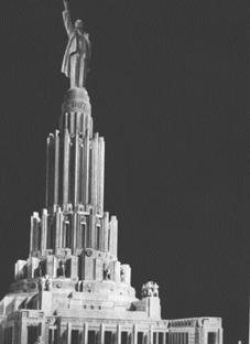 Да, был в нашей жизни Дворец Советов... Изображение этого монументального ступенчатого здания со статуей Ленина на верхушке в 30-е годы можно было видеть повсюду: на плакатах, почтовых марках, значках, настенных барельефах, в альбомах, журналах, книгах. Оно мелькало в кинохронике, и даже в двух художественных фильмах действие развивалось на фоне декораций, имитирующих фасадную часть Дворца.