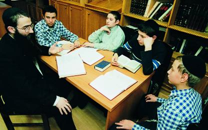 В сентябре прошлого года, вероятно, только в этой московской школе не было привычного "первого сентября". Дело в том, что школа эта неординарная. Занятия здесь начинаются не как в обычных школах, а с праздника Рош а-Шона — еврейского Нового года. Поздравления, пожелания сладкого нового года, вкусная еда, мед и яблоки — все это первые впечатления ребят от начала учебного года. Отметив вступление в новый год, учащиеся, а это только мальчики 12—16 лет, приступают к занятиям.