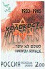 «Отдельно», вне контекста юбилейной серии, с подчеркнутым уважением к трагедии еврейского народа в годы нацизма, издана марка, посвященная памяти миллионов жертв Холокоста. Трагедию народа символически предает рисунок на марке. По-русски и по-английски на ней написано слово «Холокост», по-русски и на иврите – категорическое «Никогда больше...».