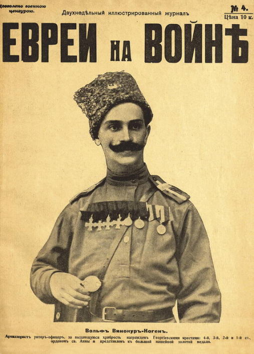 - Обложка двухнедельного иллюстрированного журнала «Евреи на войне» № 4 за 1915 год