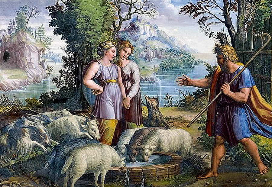 Яаков влюбился в Рахель, но Лаван обманул его, подсунув в жены Лею, ее старшую сестру. В конце концов Яаков женился и на Рахели, но Б‑г, видя, что Лея нелюбима, дал ей детей, Рахель же долгое время оставалась бесплодной. Лея родила Яакову шестерых сыновей, затем забеременела в седьмой раз, и у нее родилась дочь. В тексте Торы об этом сказано так (Берешит, 30:21): «И после этого она родила дочь и назвала ее Дина».