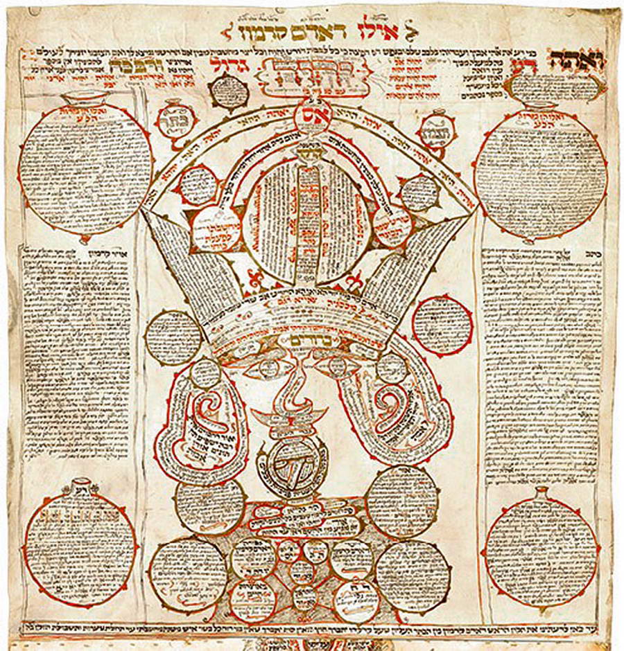 Самая распространенная разновидность илана — изображение десяти кружочков, каждый из которых соответствует одной из сфирот. Кружочки соединены линиями или каналами, сгруппированы в три столпа, а по вертикали расположены следующим образом: на самом верху — высшая сфира Кетер (Корона), в самом низу — самая нижняя сфира Малхут (Царство). С помощью таких диаграмм каббалисты — это пестрое скопище еврейских провидцев и бумагомарателей — строили теоретические предположения о Б‑ге и космосе, часто вычерчивая свои иланот на длинных свитках. Иланот моментально притягивают взгляд: на пергаменте раскинулись дерзкие контуры и текстовые блоки, интригующие и непостижимые. Но это не только ценнейшие религиозно‑художественные артефакты и даже не просто «забытый жанр» еврейской эзотерики. Благодаря тому, как живо и вдумчиво описывает их Хайес, нам открывается, что иланот — это материальные объекты, приоткрывающие перед нами что‑то более важное.