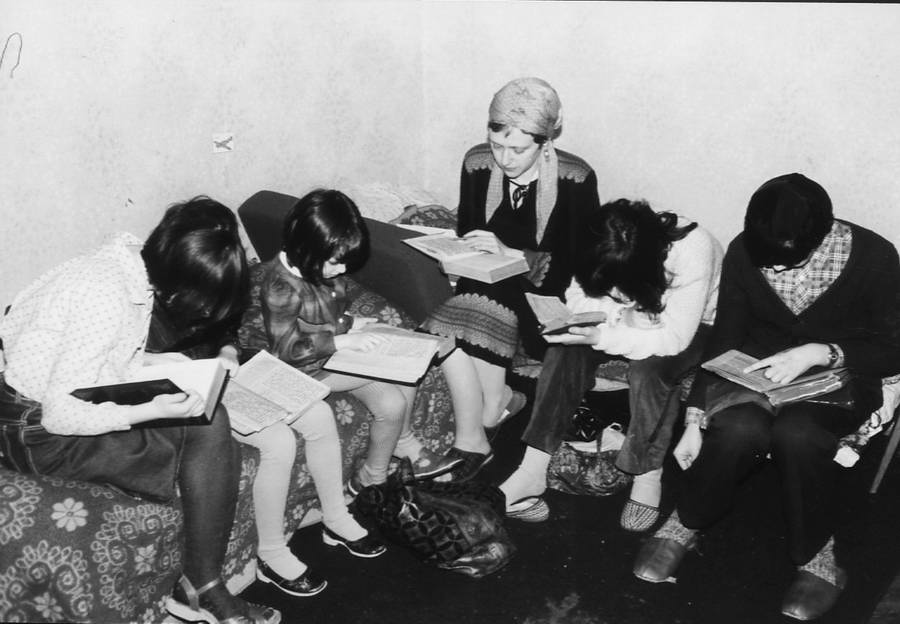 Женщины воспитывали детей дома. Я окончила педагогический вуз и, став в отказе «врагом народа», не могла работать по специальности, преподавать советским детям. Для отвода глаз, чтобы числиться работающими, мы оформлялись друг к другу уборщицами через фирму «Заря». Я не хотела посылать детей в сад из‑за идеологических проблем. Забота о четырех детях, находящихся круглосуточно дома, была трудной работой. Помимо этого, несколько раз в неделю неожиданно возникали посланники из‑за рубежа, которые, оказавшись в Москве, тут же звонили нам из телефона‑автомата. У них было мало времени, требовалось немедленно организовать им встречи и уроки, квартиры и аудиторию. Зачастую несколько посланников приезжали одновременно, и уроки шли параллельно в разных группах: Тора, Талмуд, хазанут, организация воскресных школ и др. Обычно координацией таких уроков занимались женщины, а сами занятия проходили по вечерам, когда мужья возвращались с работы. Кроме того, нужно было постоянно иметь большой запас кошерной еды, чтобы накормить голодных посланников. Поиск еды занимал в те годы немало времени. Там «выбросили» морского окуня, здесь появилась кукуруза в консервах. Машины у нас не было. Чтобы выйти с детьми в магазин зимой, нужно было всех их одеть в шубки, валенки, рейтузы и т. д. Малыша, который еще не ходил, я сажала в санки, и мы все вместе отправлялись на «охоту». Бытовых трудностей хватало. И при этом мы участвовали в акциях протеста и демонстрациях отказников, начинали строить общину. Было тяжело еще и оттого, что нас стали бояться некоторые бывшие друзья. Даже некоторые родственники опасались к нам ходить. Но ощущение братства среди отказников и более смелых друзей очень нас поддерживало.