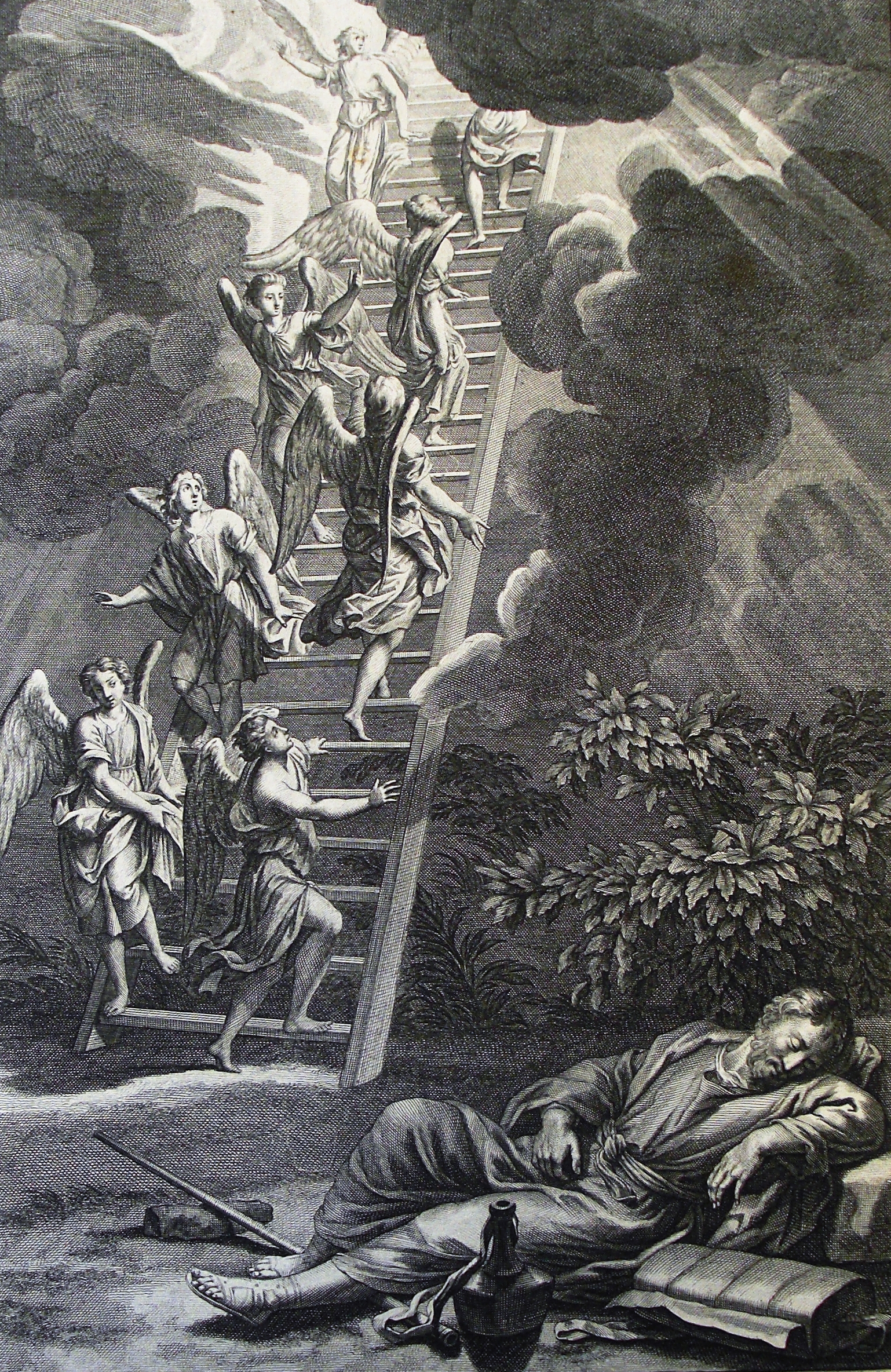 Лестница Яакова. Гравюра из Figures de la Bible («Библейские персонажи») Гаага. 1728