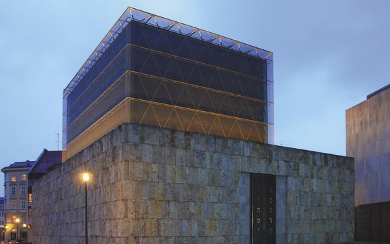 Новая синагога Мюнхена самая, пожалуй, парадоксальная из всех: огромный стеклянный куб, окруженный толстой каменной стеной. Со стороны похоже на секретный охраняемый объект. Парадоксально то, что это ультрасовременное здание, этот фантастический куб по замыслу ближе к древнему Храму, чем средневековые, более привычные нашему взгляду молельные дома.