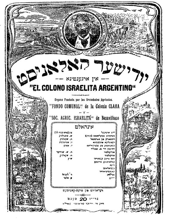 Первое издание, о котором пойдет речь, это «Идишер колонист ин Аргентине», издаваемый с ноября 1909 года Общинным фондом колонии Клара и Еврейским сельскохозяйственным обществом колонии Люсьенвиль. В дополнение к «Колонисту» в начале века в Буэнос‑Айресе выходили и другие издания: «Ди фолкштиме», «Дер авангард», «Бройт ун эре». Интересно, что «La Protesta», испаноязычный орган социалистов и анархистов, ежедневно печатал блат (страницу) на идише для рабочих‑евреев. Другим группам иммигрантов тоже предложили делать полосу на своем языке, но только еврейские рабочие воспользовались этой возможностью. Буэнос‑Айрес в то время был центром анархистской и социалистской печати во всей Латинской Америке.