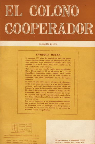 - Обложка журнала «El colono cooperador» к 175‑летию со дня рождения Генриха Гейне. Декабрь 1972
