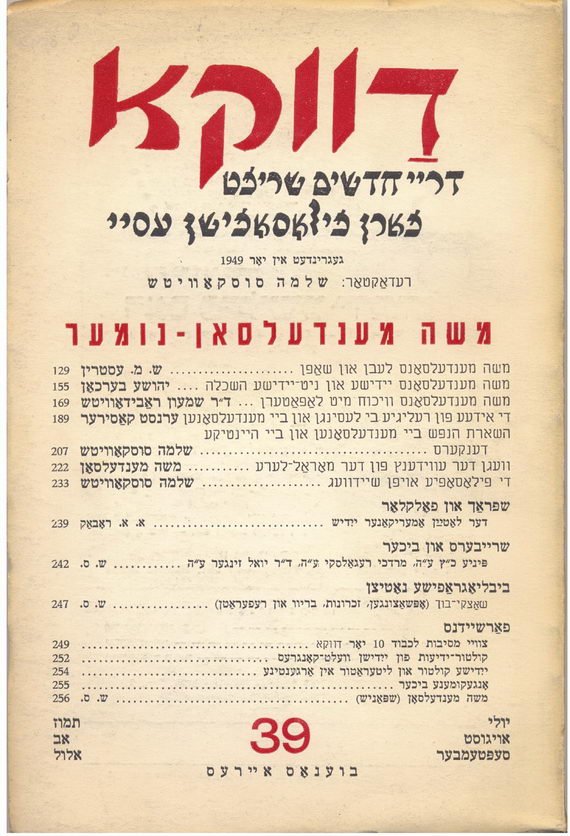 - Полоса журнала «Давке». 1949. Номер, посвященный Моисею Мендельсону