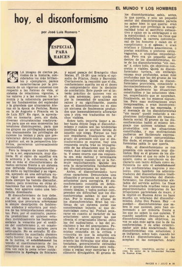 Как еврейское издание для аргентинских читателей журнал «Raíces» был, до некоторой степени, антиподом «Давке». Он начал выходить после Шестидневной войны, с 1968 года, и пытался быть еврейским рупором для всей страны. Первая редакционная статья обещала основываться на «нашей еврейской идентичности», но при этом «отражать национальные, континентальные и мировые события», а не «запираться в духовном гетто»: «Мы хотим быть услышанными как евреи, но мы не хотим слышать только еврейские голоса или говорить только на еврейские темы. Мы не отказываемся — напротив, мы настаиваем на нем с тем только условием, чтобы никто не пытался отнять самое дорогое, что у нас есть: нашу идентичность».