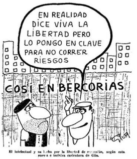 - «Запрещено думать вслух». Карикатура, перепечатанная из «Книги жалоб Гилы» Мигеля Гилы (Мадрид, 1975).«Новое присутствие»