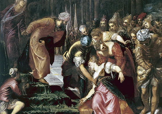 - Эсфирь перед Артаксерксом. Якопо Тинторетто. 1546–1547. Королевская коллекция, Виндзорский замок, Виндзор