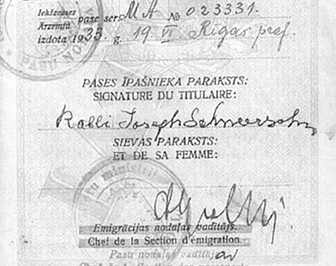 - Латвийский паспорт Ребе Йосефа‑Ицхака Шнеерсона