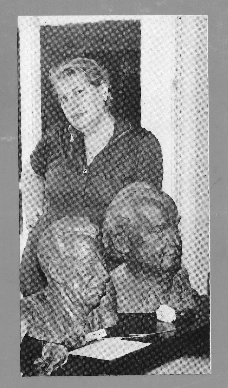 Дочь Самуила Галкина скульптор Михля Галкина‑Борухович позирует с бюстом отца (слева). 1980‑е