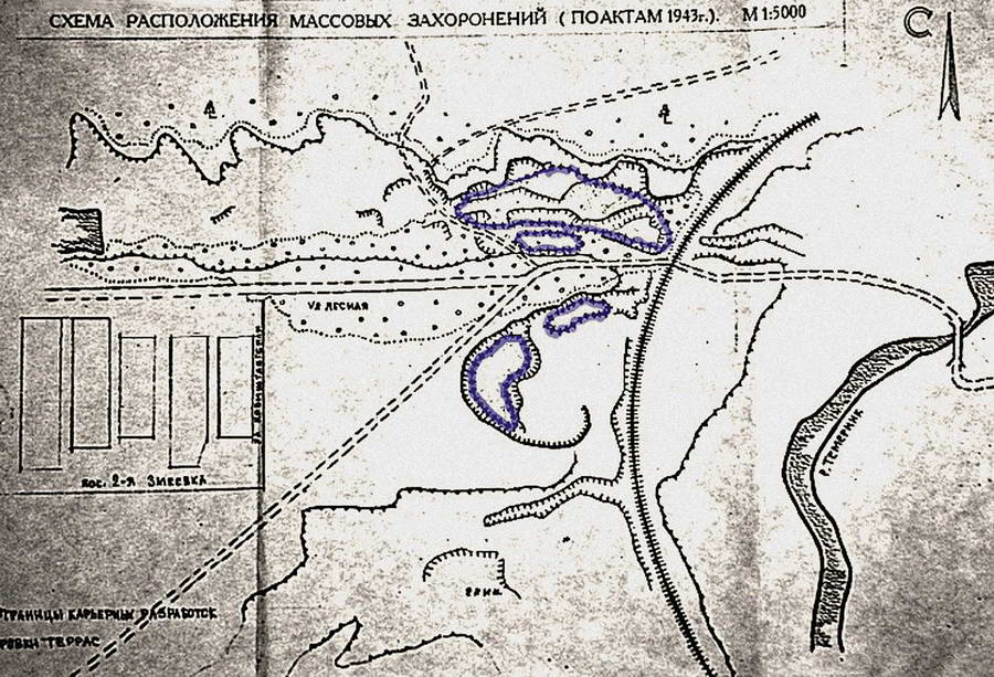 Цифра эта сложилась из результатов частичной эксгумации и грубой оценки емкости девяти ям‑могил на четырех различных расстрельных местах в Змиевской балке: 1) в песчано‑каменном карьере — три ямы, 15 тыс. человек; 2) в балке, на опушке рощи, в 500 м к востоку от Змеевка‑2 — одна яма, 10 тыс. человек; 3) на западной опушке рощи между поселками Змеевка‑2 и Западный — четыре ямы, около 2 тыс. человек и 4) в балке, севернее проселочной дороги, ведущей к Змеевке‑2, в 250 м к западу от железной дороги, ведущей на станцию Хапры, — одна яма, 150 человек. Как чисто еврейский в акте назван только один — второй по величине — 10‑тысячный контингент .