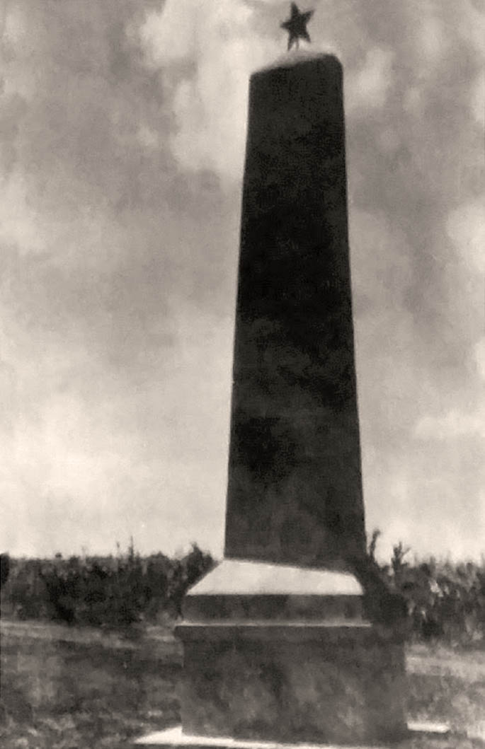 …Между тем Малый обелиск простоял еще долго. На фотографии, сделанной в июле 1970 года, он вполне еще цел, пострадала одна только звезда: ее нет. Зато появилась оградка, делающая этот коллективный монумент почти неотличимым от персональной могилки.