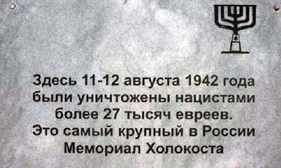11–12 августа 1942 года здесь было уничтожено нацистами более 27 тысяч евреев. Это самый крупный в России мемориал холокоста.