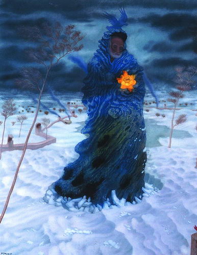 Трудно найти область искусства, в которой 86‑летний Арик Брауер не считался бы [footnote text=’См.: Еще посмотрим, Лехаим. 2014. № 4′]классиком[/footnote]. Он и певец, и танцор, и поэт, и песни сочиняет… Но главное — художник, один из основателей, вместе с Эрнстом Фуксом и Рудольфом Хаузнером, венской школы фантастического реализма. Название ее условно и призвано скрыть эклектичную поэтику, в случае Брауера — смешение техники средневековой миниатюры и восточного стиля. В результате возникают поэтичные образы и видения, как, например, автопортрет 1963 года и созданное специально к выставке полотно «Брауер осенью» или картина «Мой отец зимой» (1983), запечатлевшая старика с яркой желтой звездой на груди, бредущего в сумерках по заснеженной равнине.