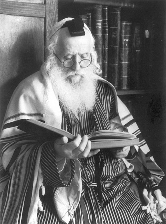 Раввин Иешуа‑Хешл Холтовски, глава Карлинской хасидской общины, во время молитвы. Израиль. 1955