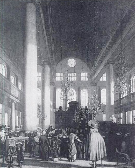 Книги, описывающие Амстердам в шестидесятые годы XVII века и позднее, усиливают впечатление, что для местных жителей сефардская синагога стала частью общей культурной и социальной среды города . Гравюры таких художников, как И. Венхузен и Ромейн де Хоге, представляют интерьер и экстерьер синагоги в стиле, который использовали голландские художники для изображения кальвинистских церквей того времени. Это показывает, что для жителей Амстердама это еврейское здание стало привычной и значимой точкой в ландшафте города и воспринималось как одно из известных культовых мест .