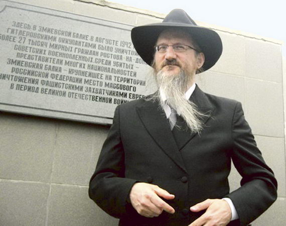 Главный раввин России Берл Лазар на церемонии открытия памятной таблички на мемориале в Змиевской балке. Ростов‑на‑Дону. 28 апреля 2014. bloknot‑rostov.ru