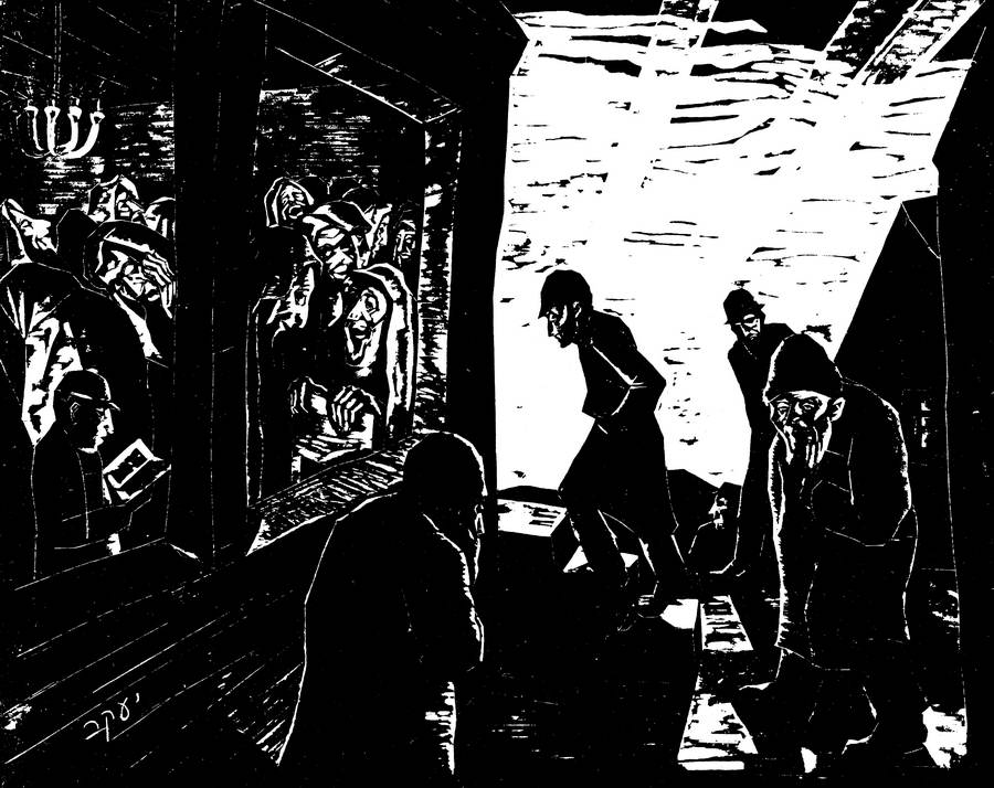 Ясно, что он явился неспроста. Наверно, какие‑то вести принес, важные вести. Все замолкают и прислушиваются, сбросив с головы талесы. Дети забираются на столы и подоконники.